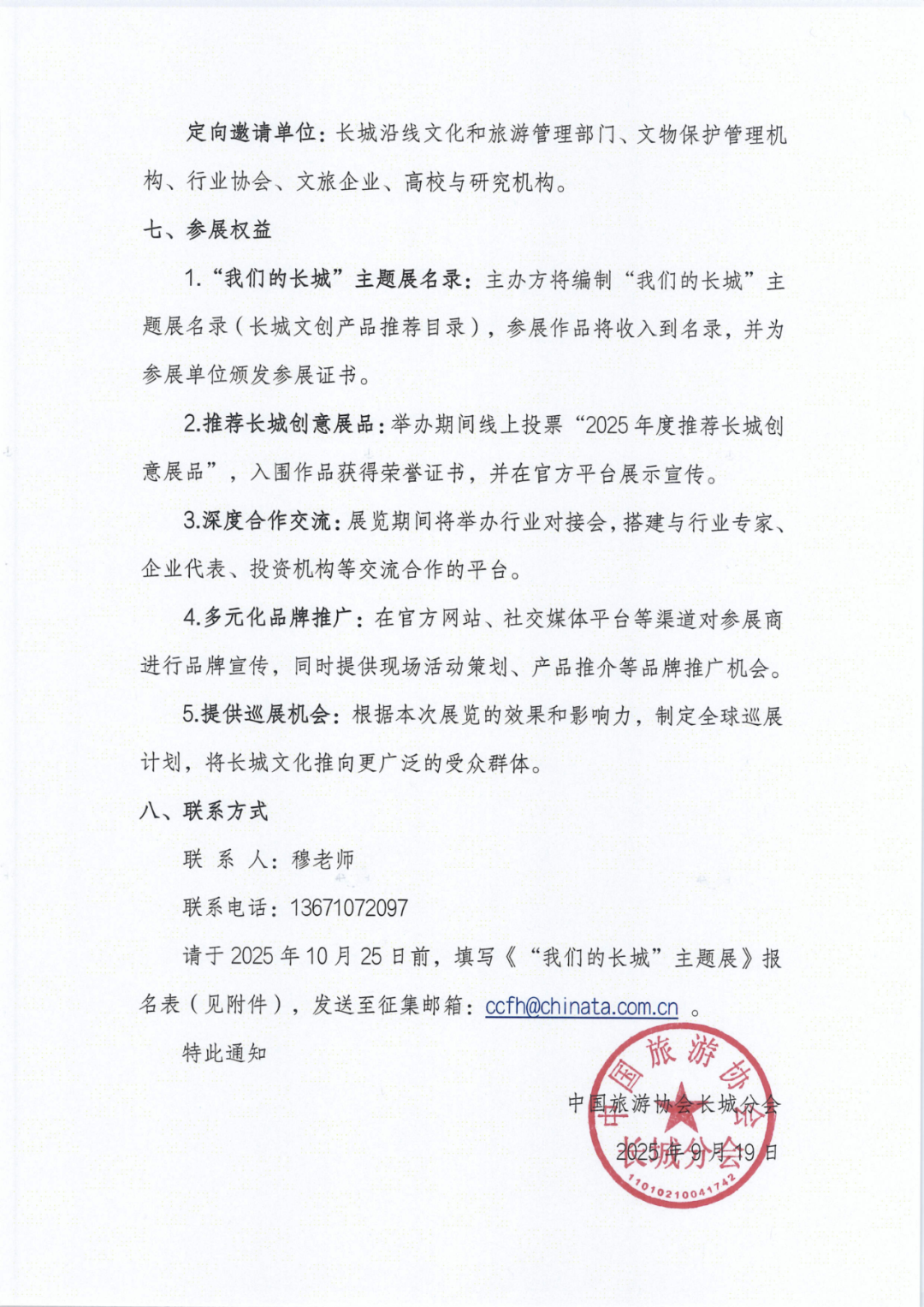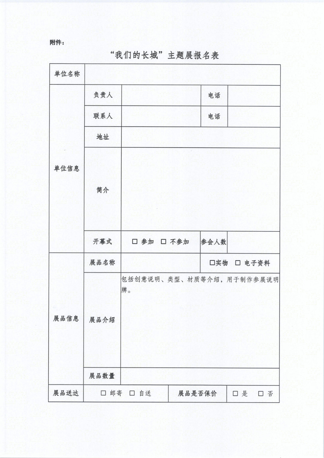 请于2025年10月25日前,填写《“我们的长城”主题展》报名表(见附件),发送至征集邮箱:ccfh@chinata.com.cn 。